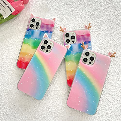 Nadoli per Xiaomi Redmi Note 9S Custodia,Arcobaleno Colore Disegno Carino Kawaii Gatto Orecchio 3D Cartone Brillanti Glitter Bling Sottile Morbida TPU Silicone Protettiva Cover