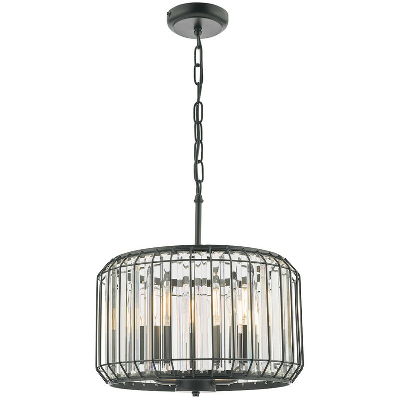Dar Naeva Plafoniera a sospensione a 3 luci in cristallo nero satinato | Finitura: nero opaco, cristallo | Classificazione IP: IP20 | Altezza: 25cm | Altezza minima: 42 cm | Altezza massima: 139 cm | Diametro: 36 cm | Tipo di lampada: E14 | N. di lampade: 3 | Lampadina inclusa: No | Peso: 3,5 kg | Potenza (massima): 25W