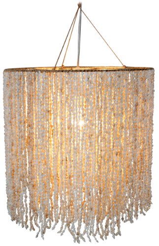 Naeve Leuchten 710327 - Lampadario da sospensione a 1 luce con conchiglie, 1 lampadina E27 60 W 230V 50Hz esclusa, altezza 40 cm, diametro 40 cm, in metallo e conchiglie, colore: Naturale