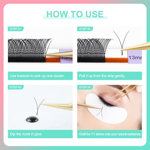 YY Lash: ha 4 estensioni legate insieme, il che è molto semplice per creare ventagli quando si afferra con una pinzetta, non è necessaria alcuna abilità. Ottieni istantaneamente un cluster 4D.