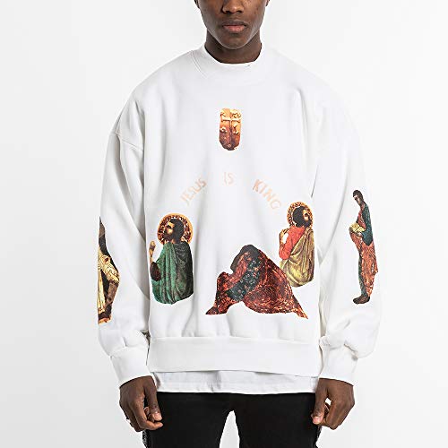NAGRI Jesus is King Felpe Senza Cappuccio Sweatshirt Bianco,L