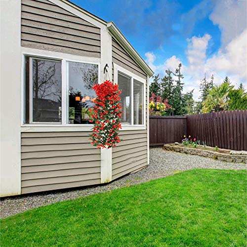 I fiori rossi e le foglie artificiali sono dai colori vivaci e sembrano così eleganti e belli, adatti per appendere cestini in inverno, appesi a pareti, porte, altalene, specchi e ovunque tu voglia.