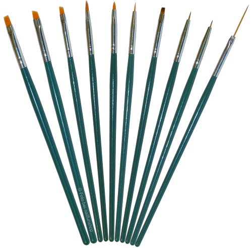 NAILFUN Set di 10 Pennelli Verdi per Nail Art