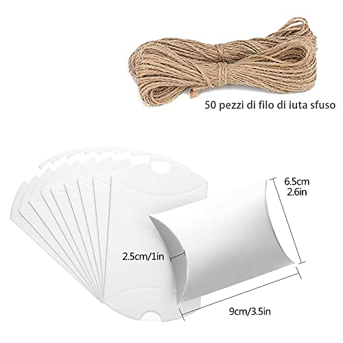 Naiocase 50 Pezzi Scatole Cuscini Carta Kraft Vintage, scatoline regalo con Corda di Canapa, Ideale per Festa Laurea Matrimonio Compleanno Regalo (50)