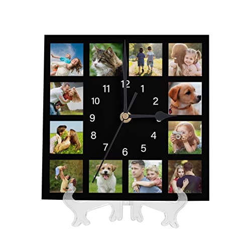 Naispanda Orologio da Parete Personalizzato con Foto, Orologi da Parete Quadrato Personalizzato Foto Testo per Regalo Decorativo Anniversario Matrimonio Compleanno Della Madre Padre Famiglia
