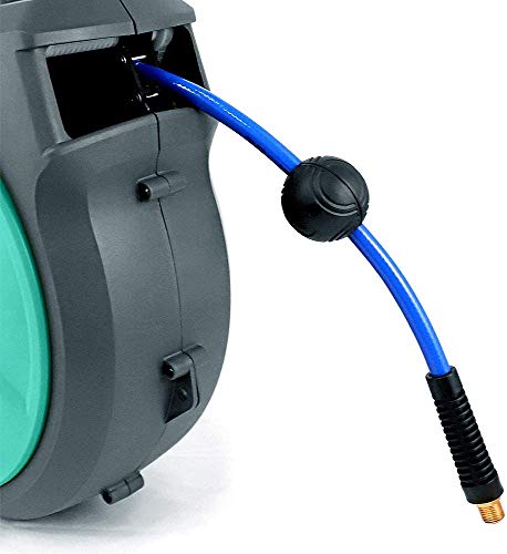 NAIZY - Avvolgitubo ad aria compressa, 20 m, tamburo da 1/4", con attacco rapido e sfera di bloccaggio per stazioni di riparazione auto e giardino (20 m, verde)