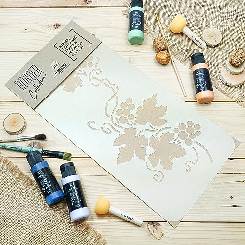 NAKLEO Border Riutilizzabile Plastica Muro Stencil - 21x45cm - UVA Vite Frutta - Pattern Pittura Striscia DIY Art Craft Template - Tessuto Mobili Legno