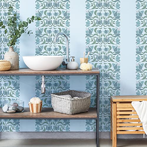 NAKLEO Stencil per Piastrelle in Plastica Riutilizzabile - 20x20cm - Art Nouveau Deco Fiore 4 - Marocchino Geometrico - Paver Blocco In calcestruzzo Pavimento Muro Pittura Modello Legno