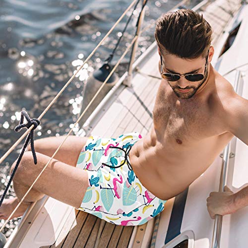 Nakw88 - Costume da bagno con stampa a banana con motivo fenicottero e cactus, da uomo, con fodera in rete multicolore M