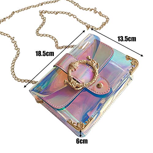 NALCY Borsa a Tracolla Olografica, Mini Borsa Messenger Trasparente, Borsa da Spiaggia Estiva Borsa a Zainetto Laser Iridescente Traslucide con Catena per Donna