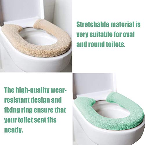 NALCY Coprisedile per WC 2PCS, Cuscino per Sedile WC in Cotone Morbido e Caldo, Coprivaso Universale per WC, Adatto per Casa, Scuola, Centro Commerciale e Hotel (Beige, Verde)