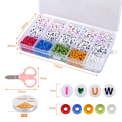 Naler Set di 1550 Perline 850 Perline di 4MM + 700 Perline di Alfabeto di 6MM Colorate per Fai da Te Mini Perle di Braccialetti, Collane, Bigiotteria