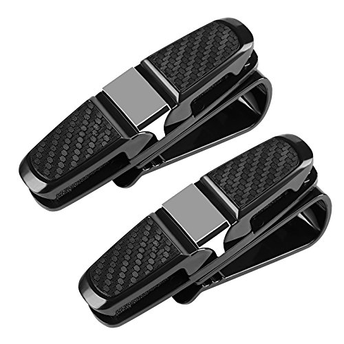 Naler 2pcs Portaocchiali per Parasole Auto, Supporto per Occhiali da Vista con Clip per Occhiali da Sole e Clip per Biglietti per Auto, Nero