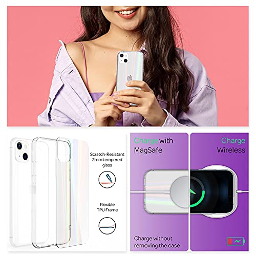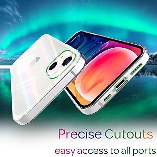 NALIA Chiaro Arcobaleno Cover compatibile con iPhone 13 Custodia, Hardcase Rigida in Vetro Temperato & Silicone Bumper Anti-Giallo Trasparente Olografico, Traslucido Clear Case Antigraffio Resistente