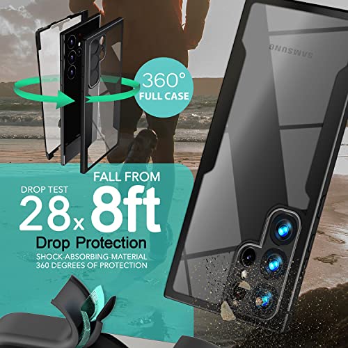 NALIA Clear 360° Case Protettiva Ibrida compatible con Samsung Galaxy S23 Ultra Custodia, Dorso Duro & Pellicola Display & Protezione Impatto Cornice Silicone Nero, Full-Cover Trasparente Anti-Giallo