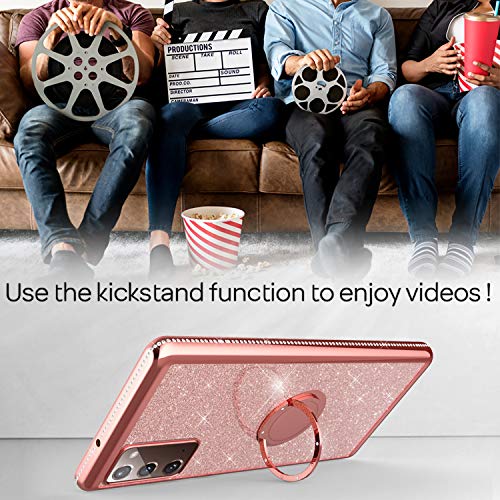 NALIA Cover con Anello compatibile con Samsung Galaxy Note 20 Custodia, Glitter Silicone Case con 360 Gradi Ring Holder Brilliantini Resistente Copertura Diamante Bling Gel Skin, Colore:Rosa Gold Oro
