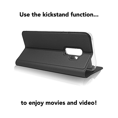NALIA Flip Cover compatibile con Samsung Galaxy S9 Plus, Custodia Sottile Verticale Case Protettiva Ecopelle magnetico, Similpelle Protezione Telefono Cellulare Slim full-body, Colore:Nero Grigio