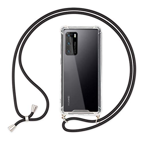 NALIA Cover con Cordino compatibile con Huawei P40 Custodia, Protettiva Trasparente Necklace Hard-Case & Girocollo, Resistente Copertura Tracolla Bumper Rigida Telefono Cellulare Guscio, Colore:Nero