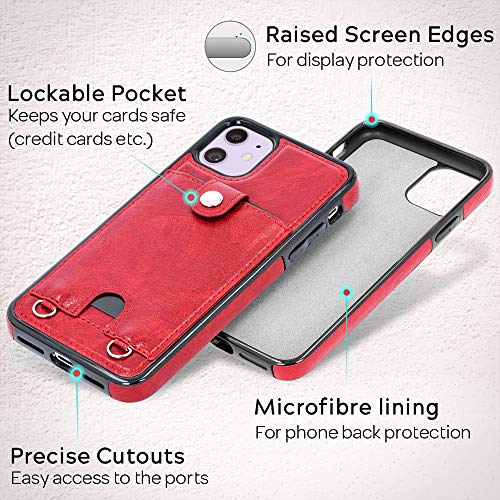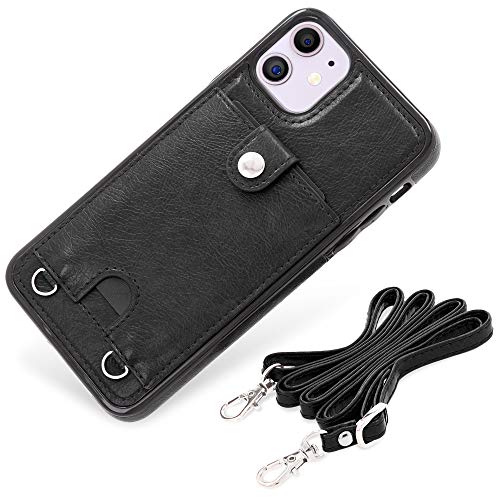 NALIA Cover con Cordino compatibile con iPhone 11 Custodia, PU Pelle Silicone Necklace Case con Slot per Schede & Girocollo, Sottile Antiurto Copertura Protettiva Resistente Skin, Colore:Nero