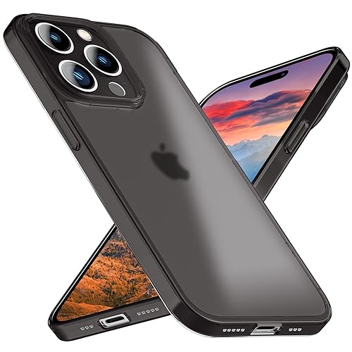NALIA Cover Estremo Sottile compatibile con iPhone 15 Pro Custodia, 0,3mm Ultra-Slim Traslucida Opaca Anti-Impronta Leggera, Ultra-Sottile Copertura Rigida Semi-Trasparente Antiscivola, Colore:Nero