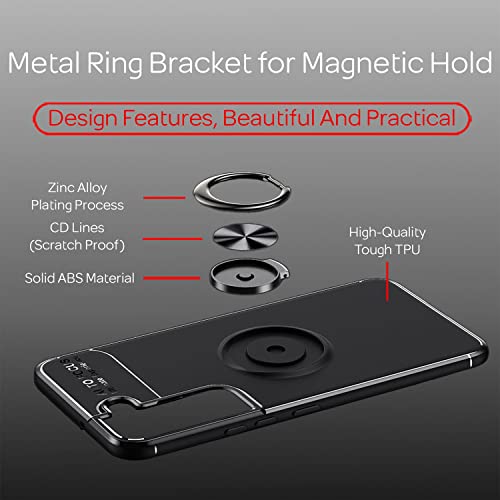 NALIA Ring Cover Nero Opaco compatibile con Samsung Galaxy S22 Custodia, Anello Girevole 360-Gradi Rotazione per Funzione & Supporto per Auto, Silicone Copertura Protettiva Case, Colore:Rosa Gold Oro