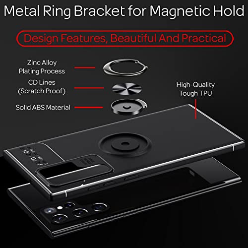 NALIA Ring Cover Nero Opaco compatibile con Samsung Galaxy S22 Ultra Custodia, Anello Girevole 360-Gradi Rotazione per Funzione & Supporto per Auto, Silicone Copertura Antiurto, Colore:Nero