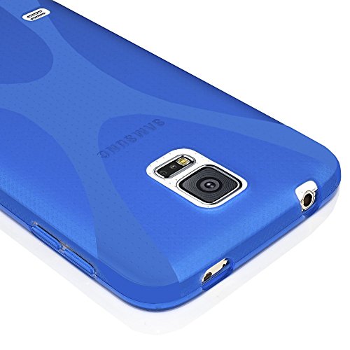 NALIA Custodia compatibile con Samsung Galaxy S5 Mini, Protezione Ultra-Slim Case Resistente Protettiva Cellulare in Silicone, Gomma Morbido Bumper Copertura Cover Sottile- X-Line Blu