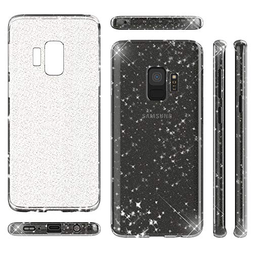 NALIA Custodia Glitter compatibile con Samsung Galaxy S9, Ultra-Slim Cellulare Silicone Gomma Cover Protettiva Pelle, Morbido Sottile Protezione Gel Telefono Smart-Phone Case, Colore:Nero