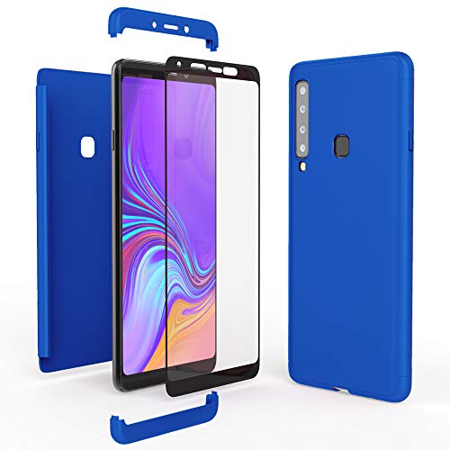 NALIA Custodia Integrale compatibile con Samsung Galaxy A9 2018, Cover Protettiva Fronte Retro & Vetro Temperato, Phone Case Rigida Protezione Telefono Cellulare Bumper Sottile, Colore:Blu