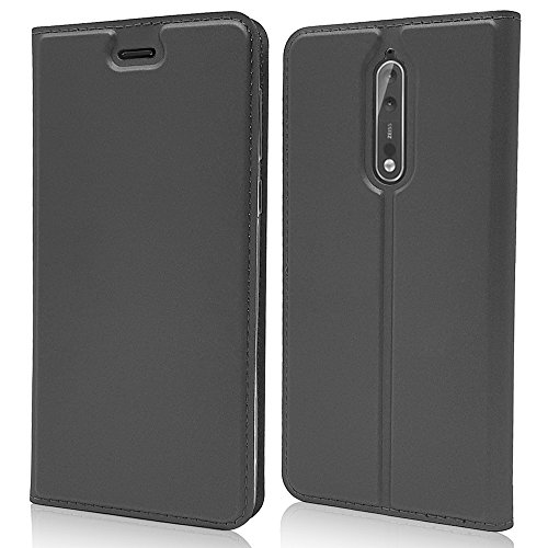 NALIA Custodia a libro compatibile con Nokia 8, cover per telefono ultra sottile in pelle magnetica posteriore e anteriore, protezione per cellulare, cavalletto, sottile, antiurto, integrale, Etui
