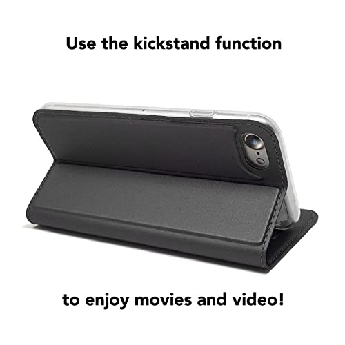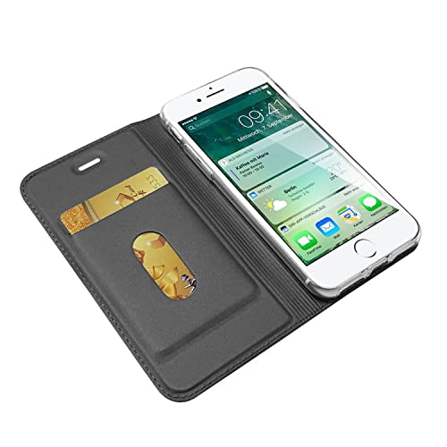 NALIA Custodia Pieghevole compatibile con iPhone SE 2022 / SE 2020/8 / 7, Protettiva Flip Case PU Pelle Telefono Cellulare Copertura, 360 Gradi Cover Resistente Fronte e Retro, Colore:Nero Grigio