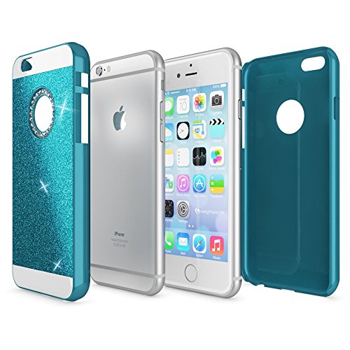 NALIA Custodia Protezione compatibile con iPhone 6 6S, Glitter Hard-Case Sottile Phone Cover Protettiva Cellulare, Ultra-Slim Copertura Rigida Telefono Bumper Scintillio, Colore:Blu