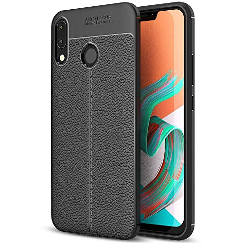 NALIA Custodia Protezione compatibile con ZenFon 5 / 5Z, Cover Aspetto di Cuoio Ultra-Slim Case Protettiva Morbido Cellulare Silicone Gel, Gomma Telefono Bumper Copertura Sottile - Nero