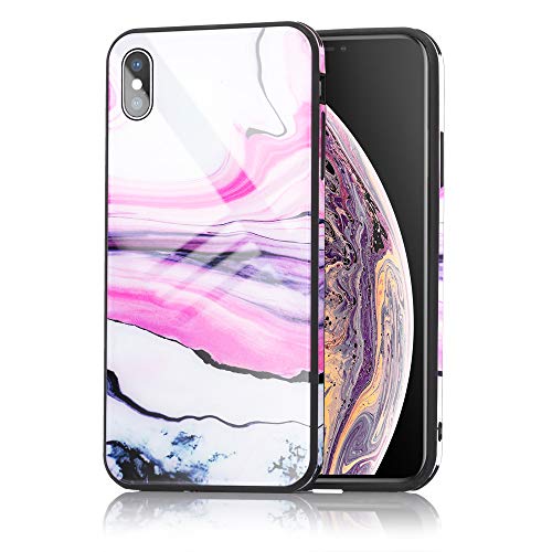 NALIA Custodia Rigida compatibile con iPhone X/XS, Marmo Disegno Cover in 9H Vetro Temperato & Silicone Bumper, Protettiva Hard-Case Resistente Copertura Antiurto Sottile, Colore:Rosa Viola