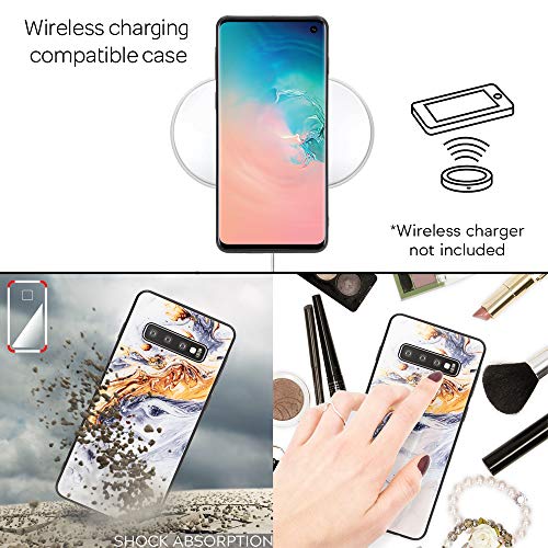 NALIA Custodia Rigida compatibile con Samsung Galaxy S10, Marmo Disegno Cover in 9H Vetro Temperato & Silicone Bumper, Protettiva Hard-Case Resistente Copertura Antiurto Sottile, Colore:Oro Grigio