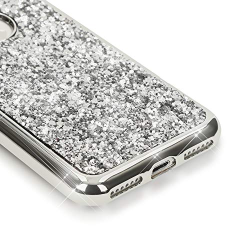 NALIA Custodia in Silicone compatibile con iPhone 7, Con Orecchie Glitter Copertura Protezione Sottile compatibile con Cellulare Cover Case Protettiva Scintillio Telefono Bumper, Colore:Argento
