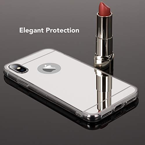 NALIA Custodia Specchio compatibile con iPhone X XS, Ultra-Slim Mirror Case Phone Cover Protettiva Silicone Telefono Cellulare Bumper Copertura Morbido Protezione Sottile, Colore:Argento