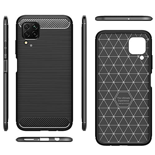 NALIA Design Cover compatibile con Huawei P40 Lite Custodia, Aspetto Carbonio Sottile Copertura Silicone con Texture Fibra di Carbonio, Morbido Gomma Case Antiurto Guscio Skin Shock Absorption - Nero