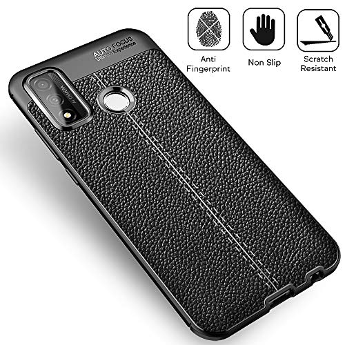 NALIA Design Cover compatibile con Huawei P smart 2020 Custodia, Aspetto in Pelle Sottile Silicone Copertura Protettiva, Slim Case Antiurto Bumper Morbido Gomma Cellulare Guscio Skin Backcover - Nero