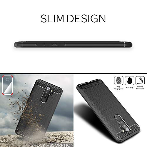 NALIA Design Cover compatibile con Xiaomi Redmi Note 8 Pro Custodia, Aspetto Carbonio Sottile Copertura Silicone con Texture Fibra di Carbonio, Morbido Gomma Case Antiurto Shock Absorption - Nero