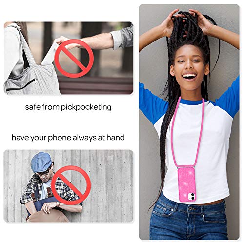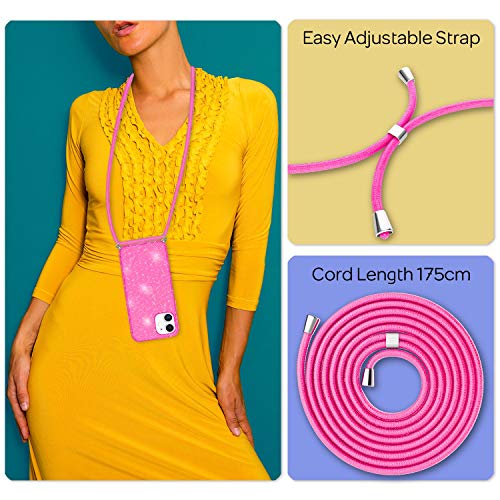 NALIA Neon Glitter Cover con Cordino compatibile con iPhone 12 / iPhone 12 Pro Custodia, Trasparente Brillantini Silicone Case & Girocollo, Traslucido Bling Copertura Skin, Colore:Rosa Glitter