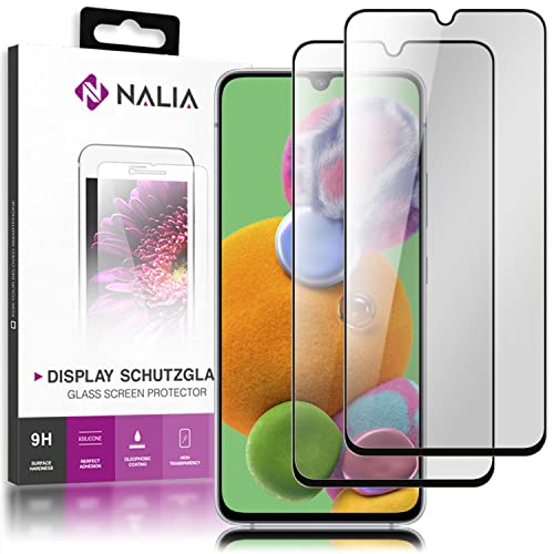 NALIA (2 Pezzi Vetro Temperato compatibile con Samsung Galaxy A90 5G, 9H Pellicola Protettiva Full-Cover Display Schermo Copertura, Tempered-Glass Protezione 3-D Screen-Protector - Trasparente Nero