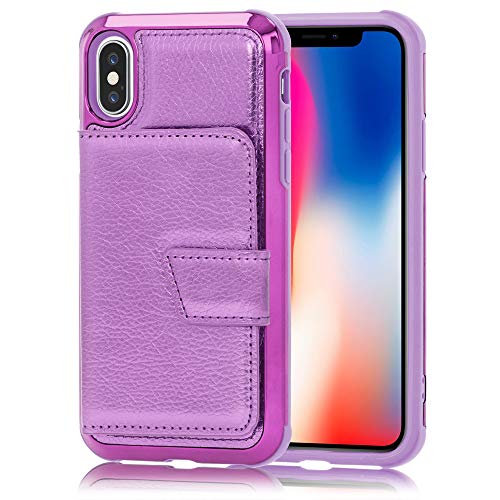 NALIA Wallet Cover compatibile con iPhone X/XS Custodia, Protettiva Copertura con Specchio & Slot per Schede & Chiusura Magnetica Brillantini PU Pelle Hardcase Bumper Resistente, Colore:Viola