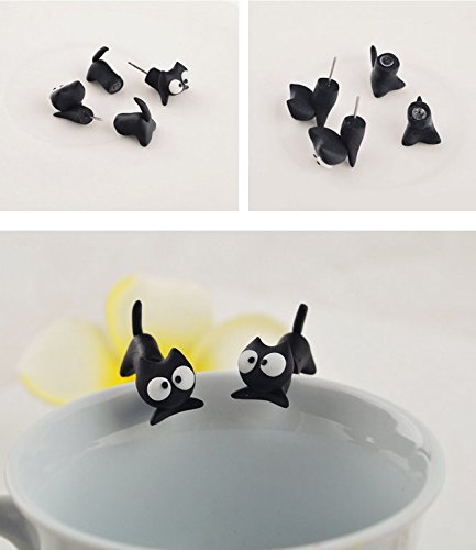 Graziosi orecchini a bottone con gatto in stile cartone animato, belli e alla moda.