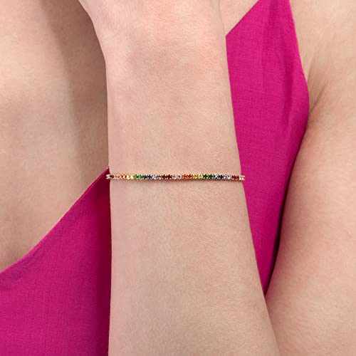 Namana Bracciale Tennis Donna Multicolore, Braccialetto Sottile Colorato per Donna e Raggazza, Delicato Bracciale Tennis Arcobaleno con Zirconi Cubici, Bracciale Oro Colorate Donna