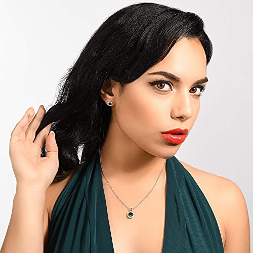 Namana Orecchini Donna Argento con Zirconi Verdi, Piccoli Orecchini a Perno con Pietre Verdi, Orecchini Verde Smeraldo per Donna y Ragazza, Orecchini Halo con Confezione Regalo