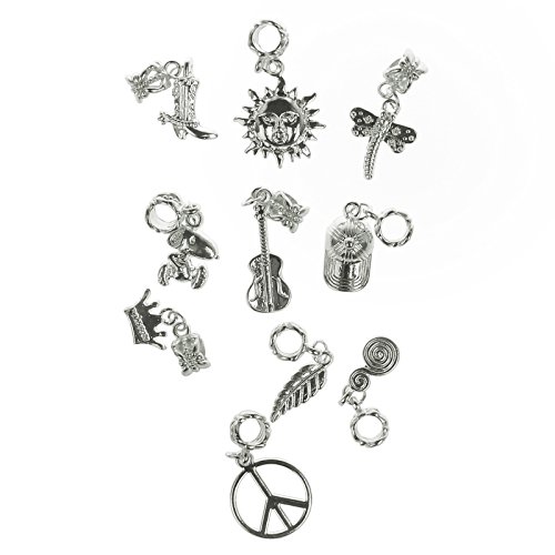 Nambeads © - Set di 10 ciondoli misti argentati per braccialetti con charm Pandora. Diametro del foro scorrevole 5 mm. Dai un'occhiata ai sacchetti contenenti perline in vetro, smaltate, charm, chiusure, diamanti sintetici, ecc. Grande varietà!
