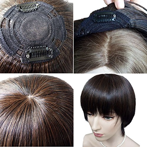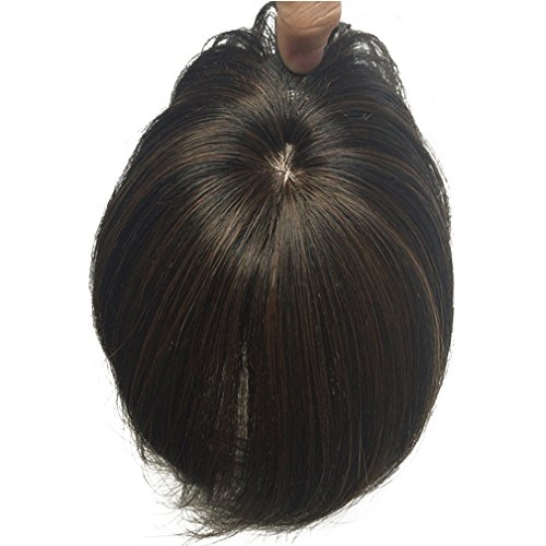 Namecute, toupet bicolore nero e castano, liscio naturale come veri capelli umani, pezzo singolo