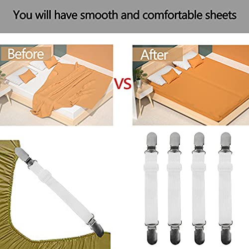 ✅Facile da installare e utilizzare: 8 fibbie di fissaggio del lenzuolo bianco, non sono necessari attrezzi, basta tenere il materasso e fissare la clip sul bordo del lenzuolo, l'operazione è semplice e veloce.