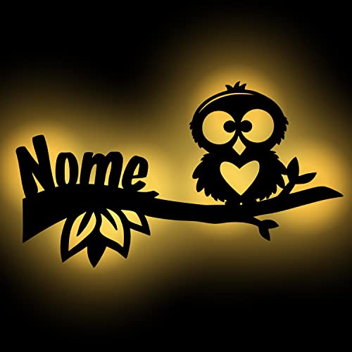 Namofactur Lampade Ottica Gufo - Luce Notturna, Lampada Led - Luce di legno a batteria - Per Cameretta Bambini